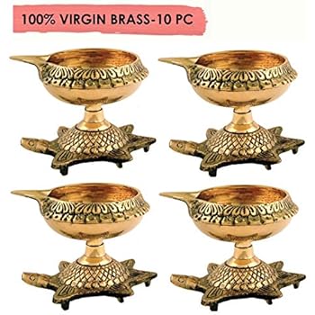 Amazon.com: Crafts'man 10 Pc Set Pure Virgin Brass Diwali Puja Jyoti Diya Indian Pooja Oil Lamp