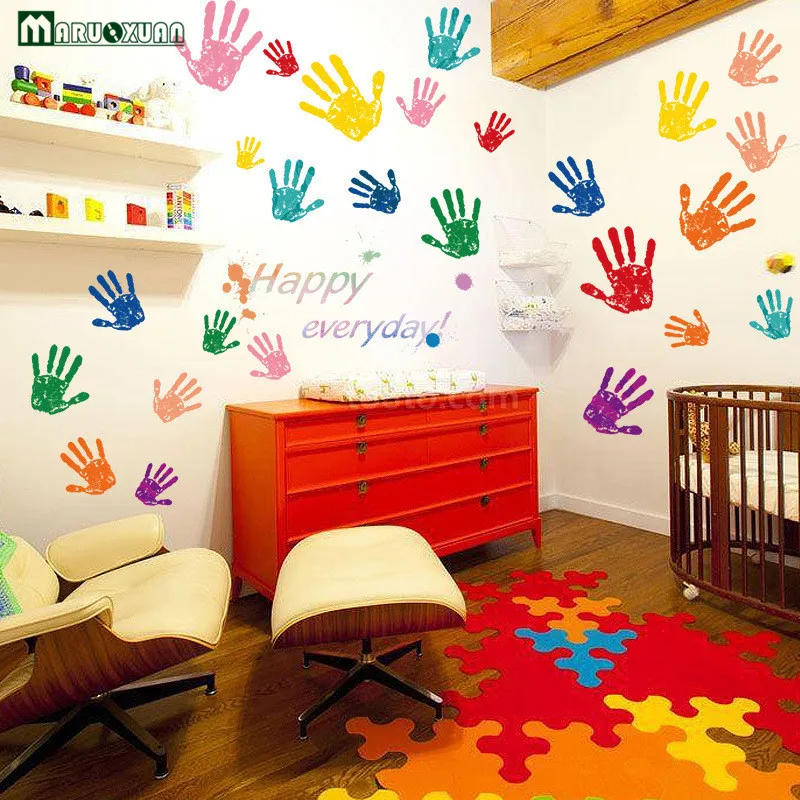 Kreative Niedlichen Kinder Bunte Handabdruck Kindergarten Kinderzimmer Grundschule Klassenzimmer
